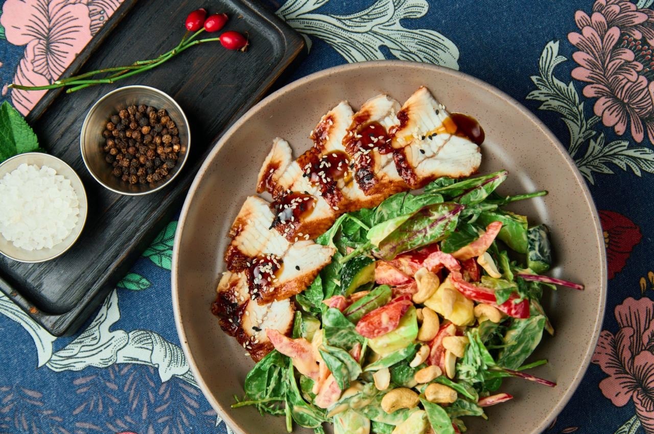 С МИКСОМ САЛАТОВ, АВОКАДО, ПЕРЦЕМ И КЕШЬЮ